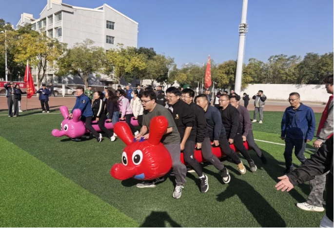 上午的团体赛项目中,学院教师团结协作、奋勇争先,在“合力建塔”“托球竞走”“蒙眼吃香蕉”等环节中密切配合,展现出蓬勃朝气与集体智慧。现场气氛热烈,掌声与欢笑不断,充分体现了“全民健身+校园文化”融合推进的生动实践。