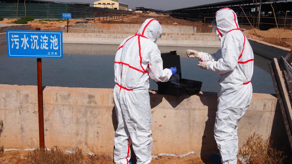 william威廉英国噬菌体研究团队在奶牛养殖场现场采集污水检测样品。银川电视台记者 宋志书 摄