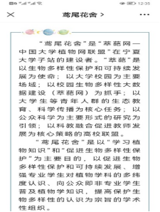 对大学生进行生态文明及生物多样性保护的教育可以起到推广辐射的作用,他们可以将这种思想潜移默化地带入到中学的课堂、中学生的生活及学生的社会关系中。为同学们未来步入社会、投入到祖国建设的征途中弘扬生态文明、建设美丽中国定下基调。力求知识传授、能力培养和价值引领的同步提升,达成立德树人的教育目标。
